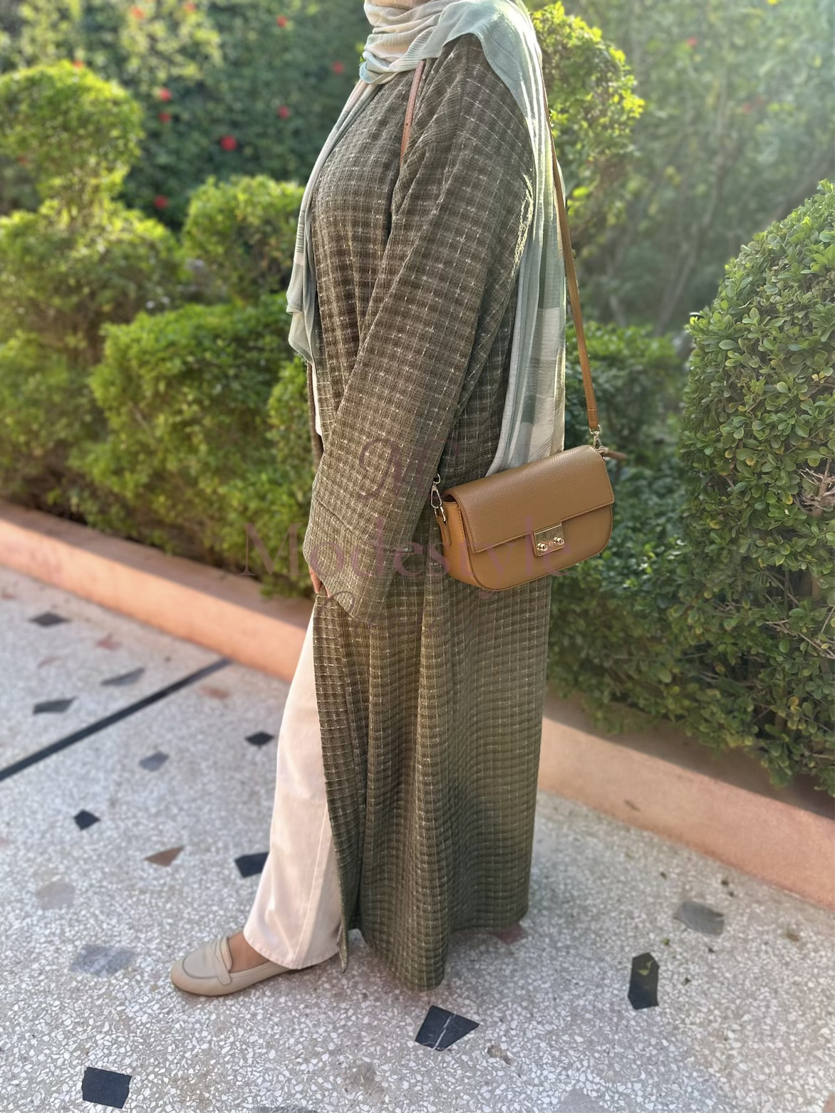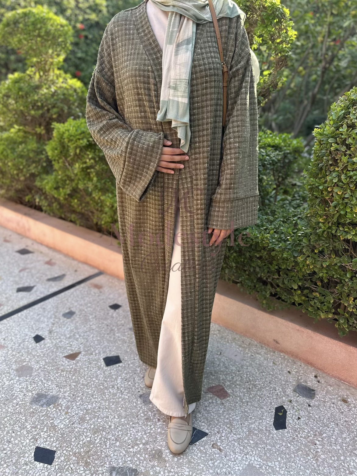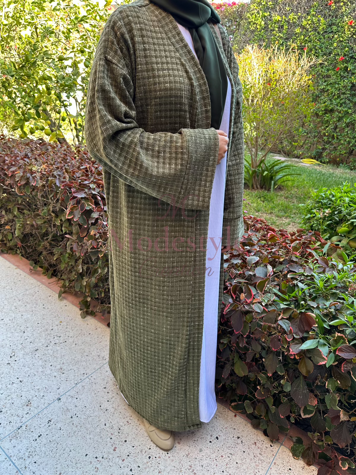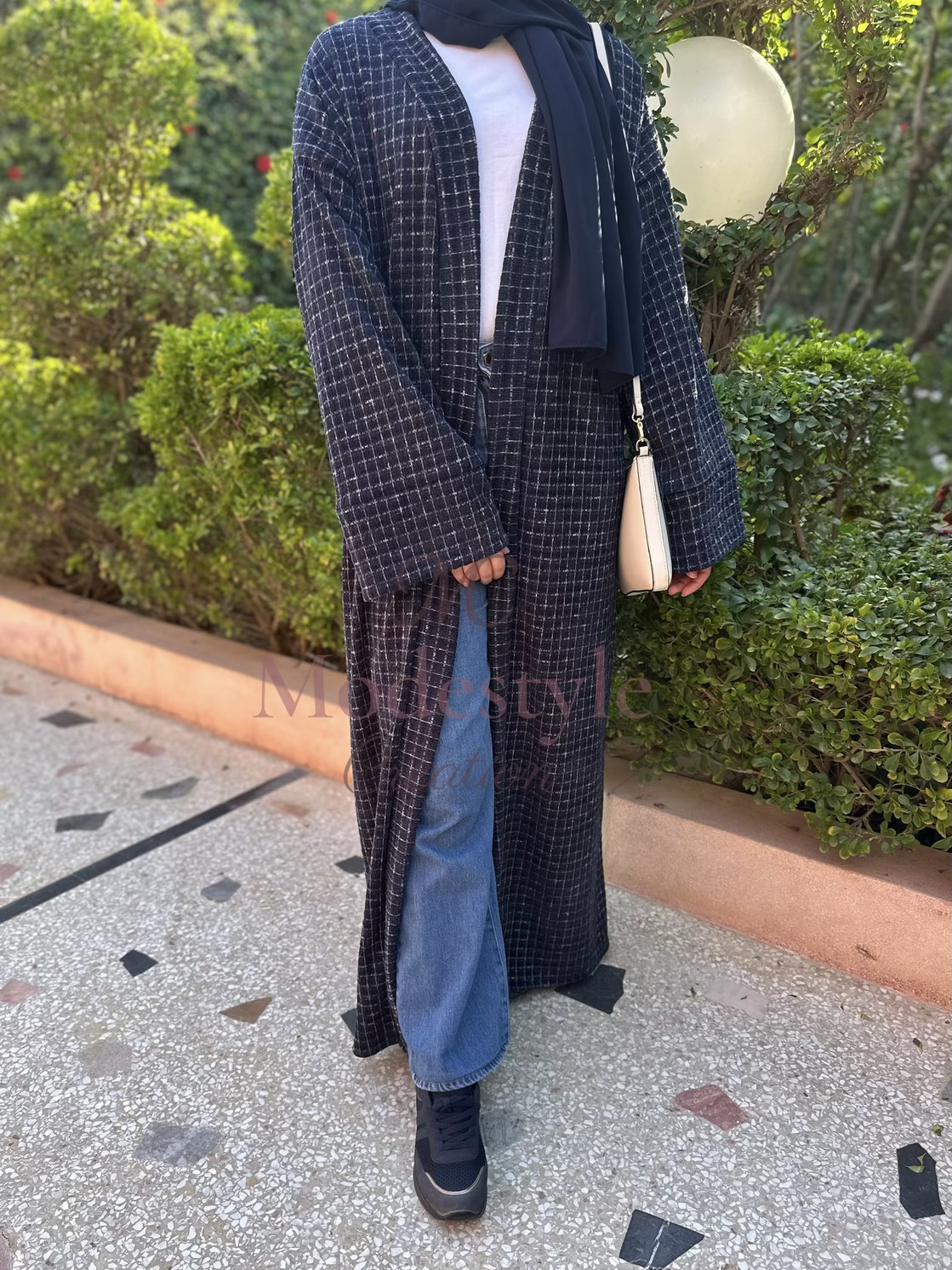 Abaya en tissu Chanel, élégante et pratique pour toutes vos occasions. Elle peut se porter en style casual avec un pantalon ou classy avec une robe en dessous.