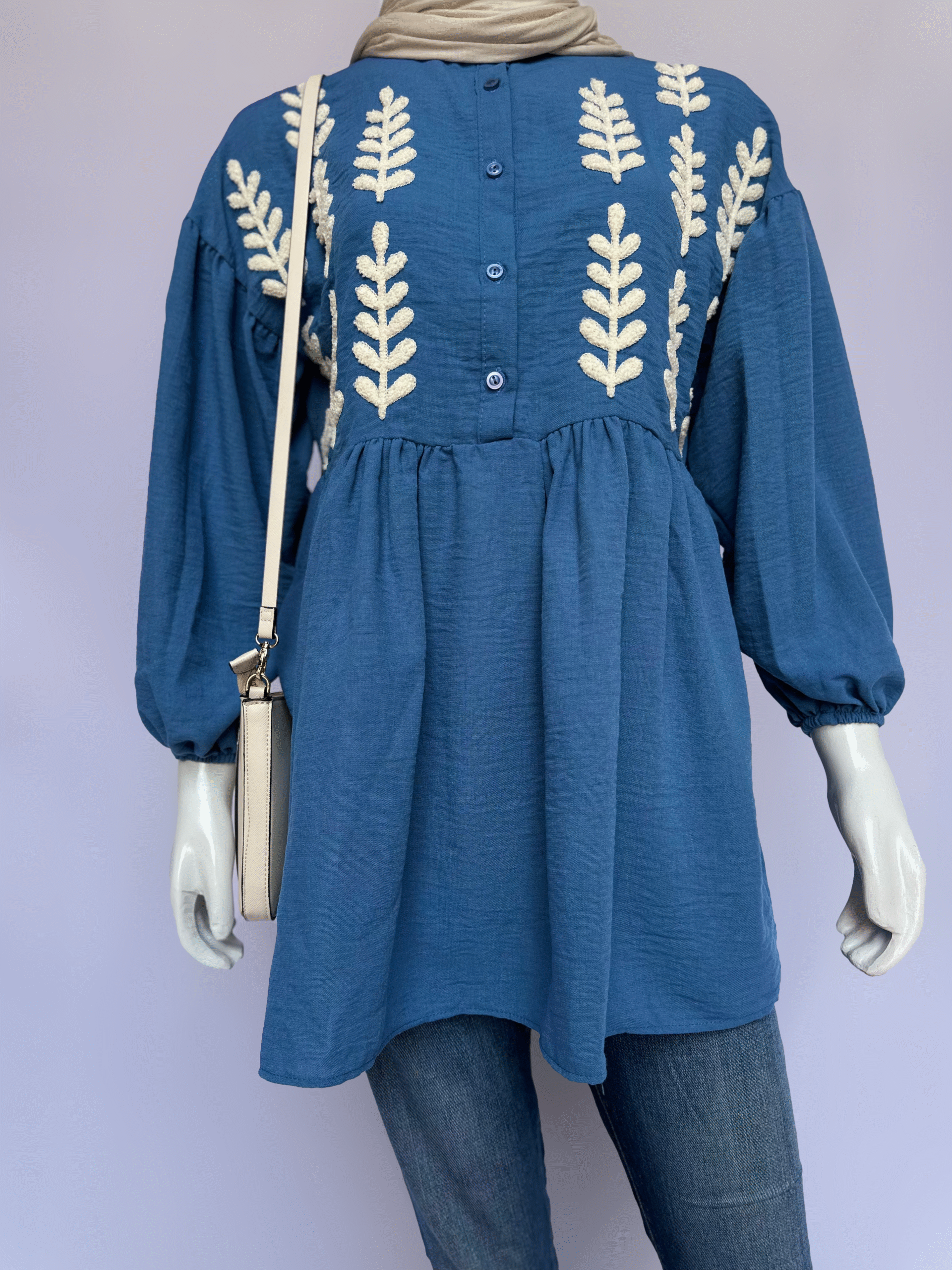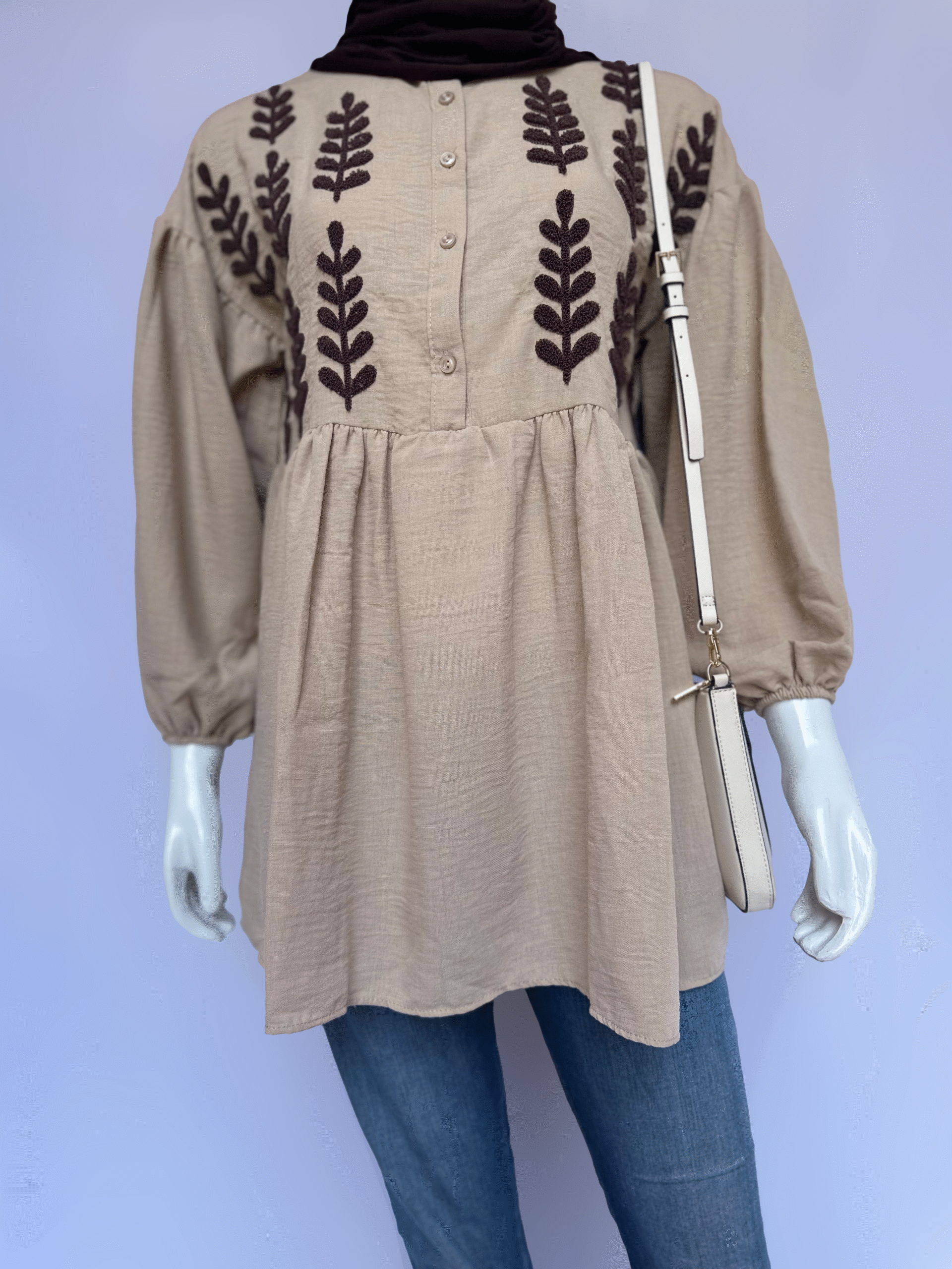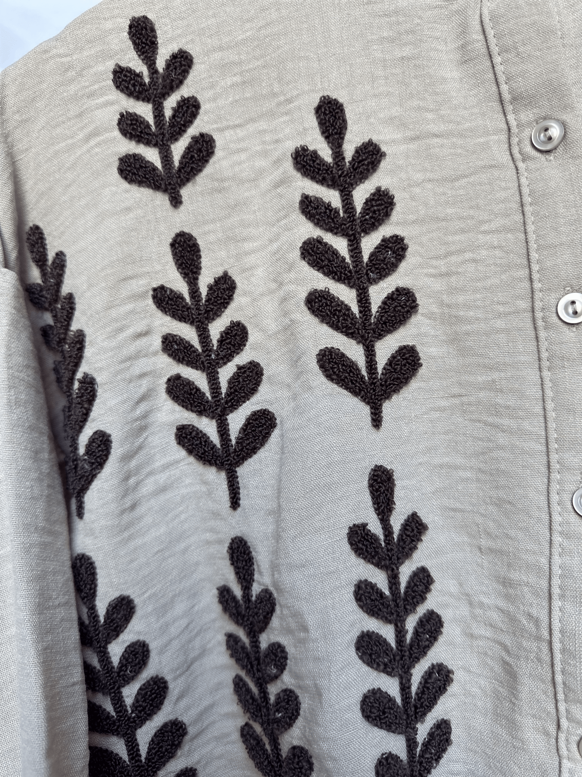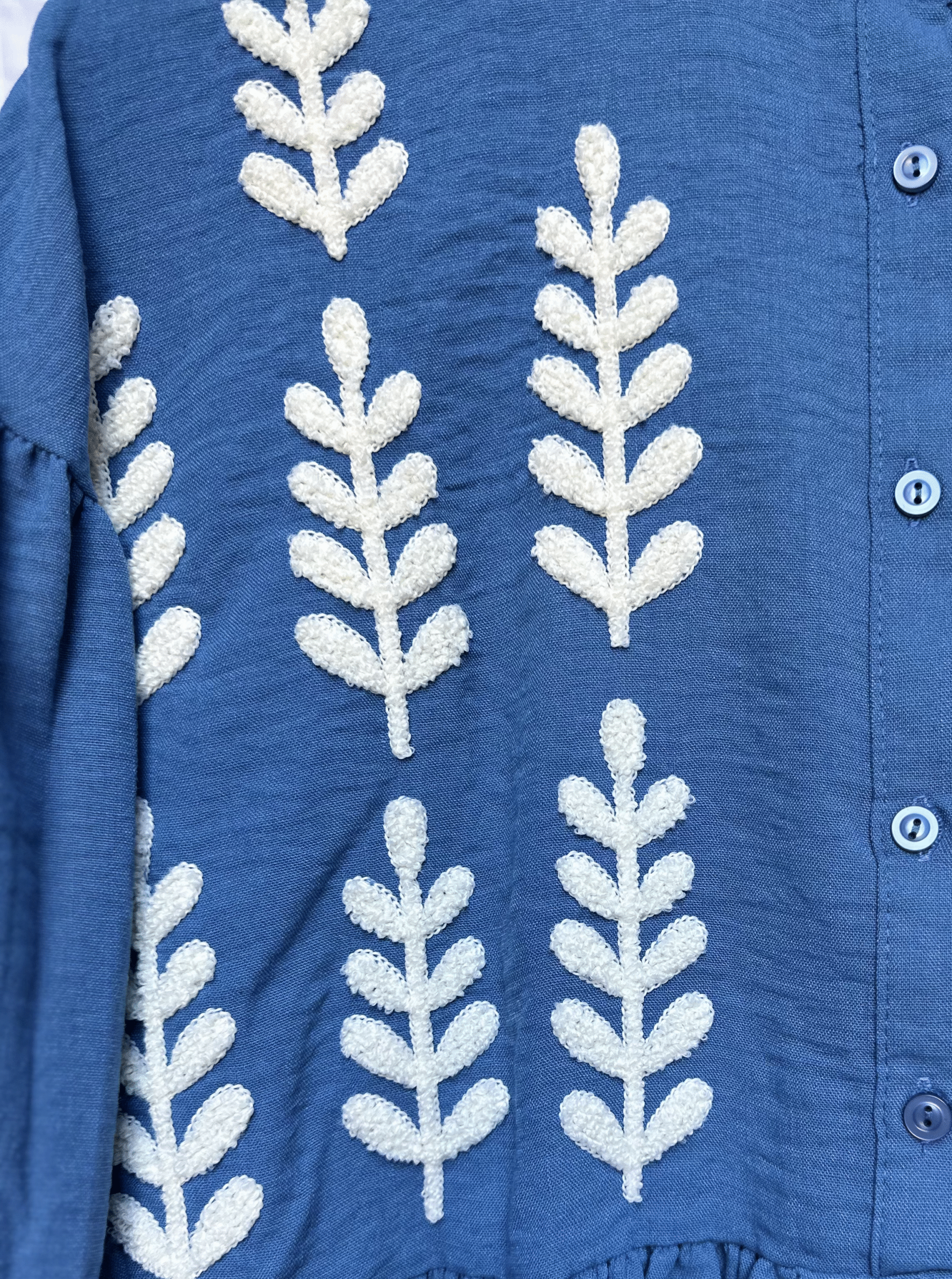 Chemise classy et girly en lin avec broderie disponible en taille standard et s’adapte aux différentes morphologies.