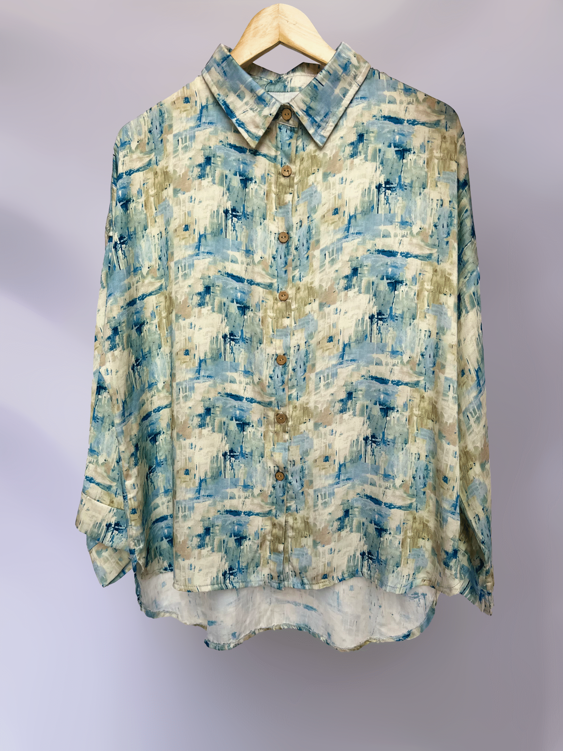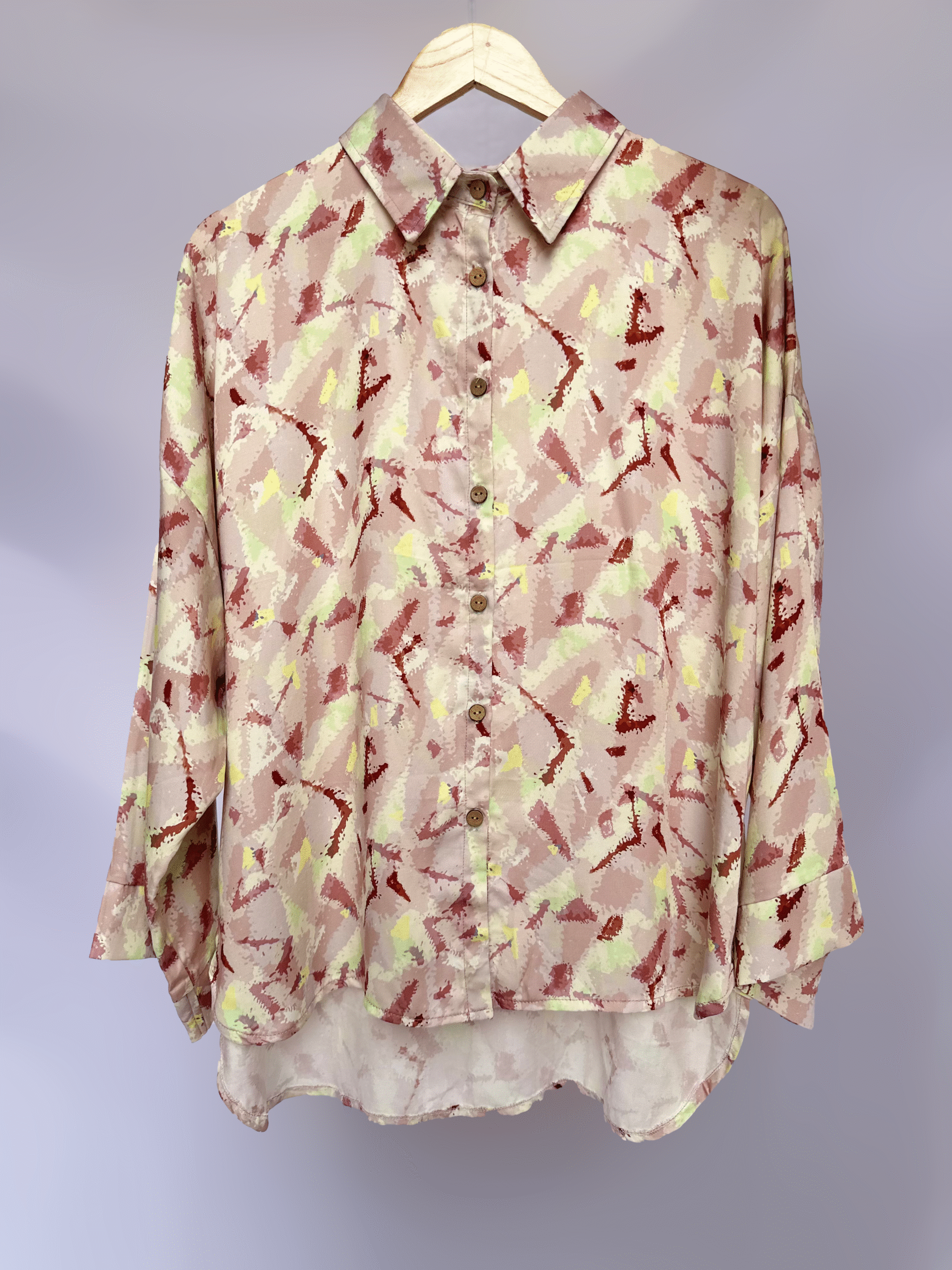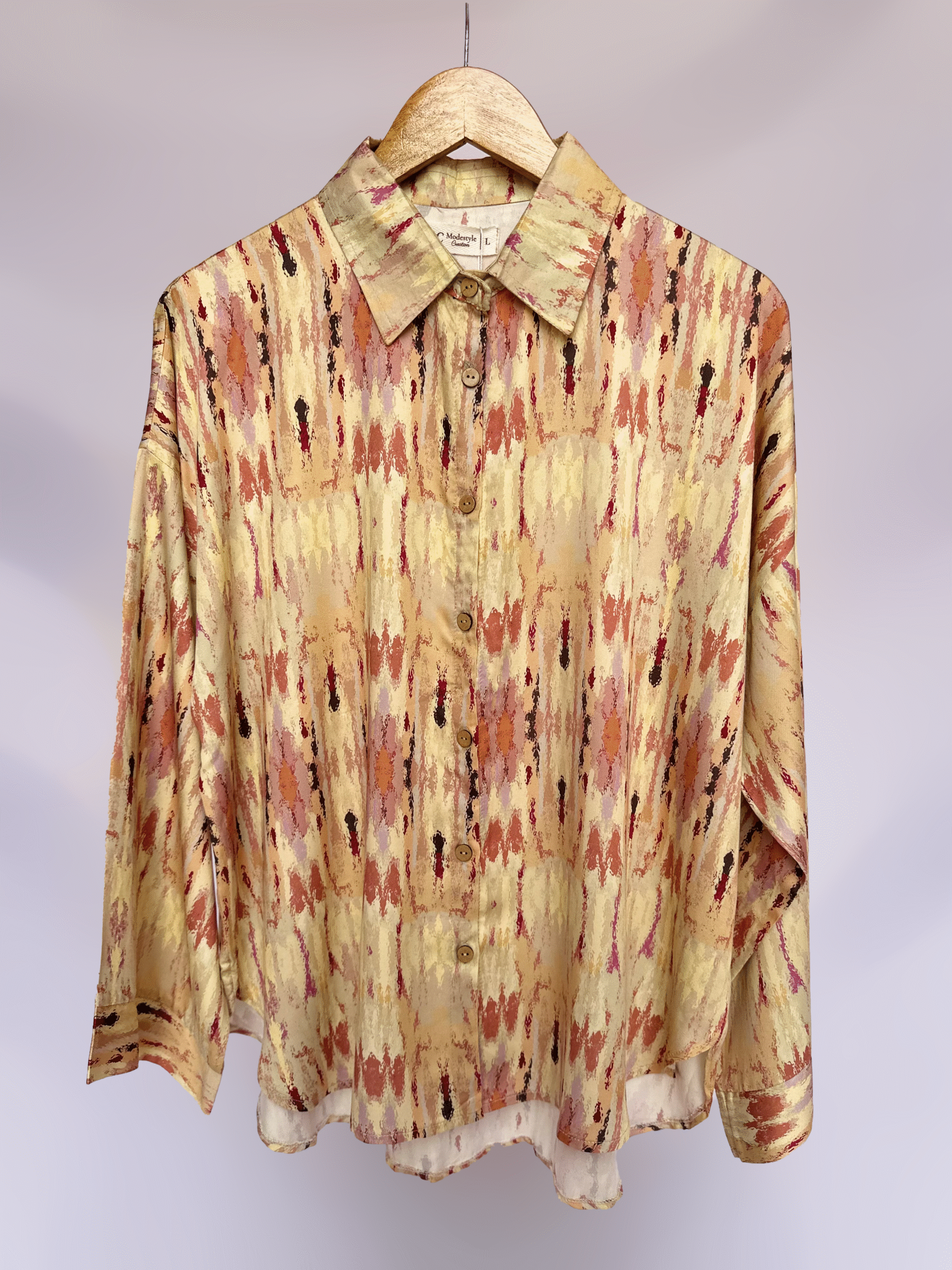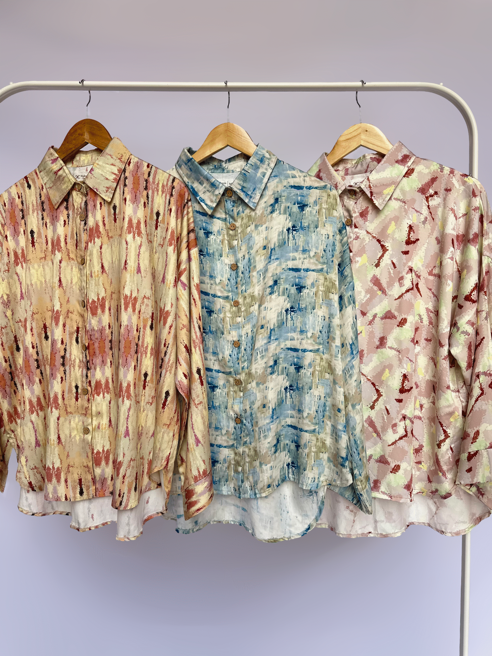 Chemise imprimée Oversize en fil satiné, parfaite pour l’été disponible en 3 motifs.