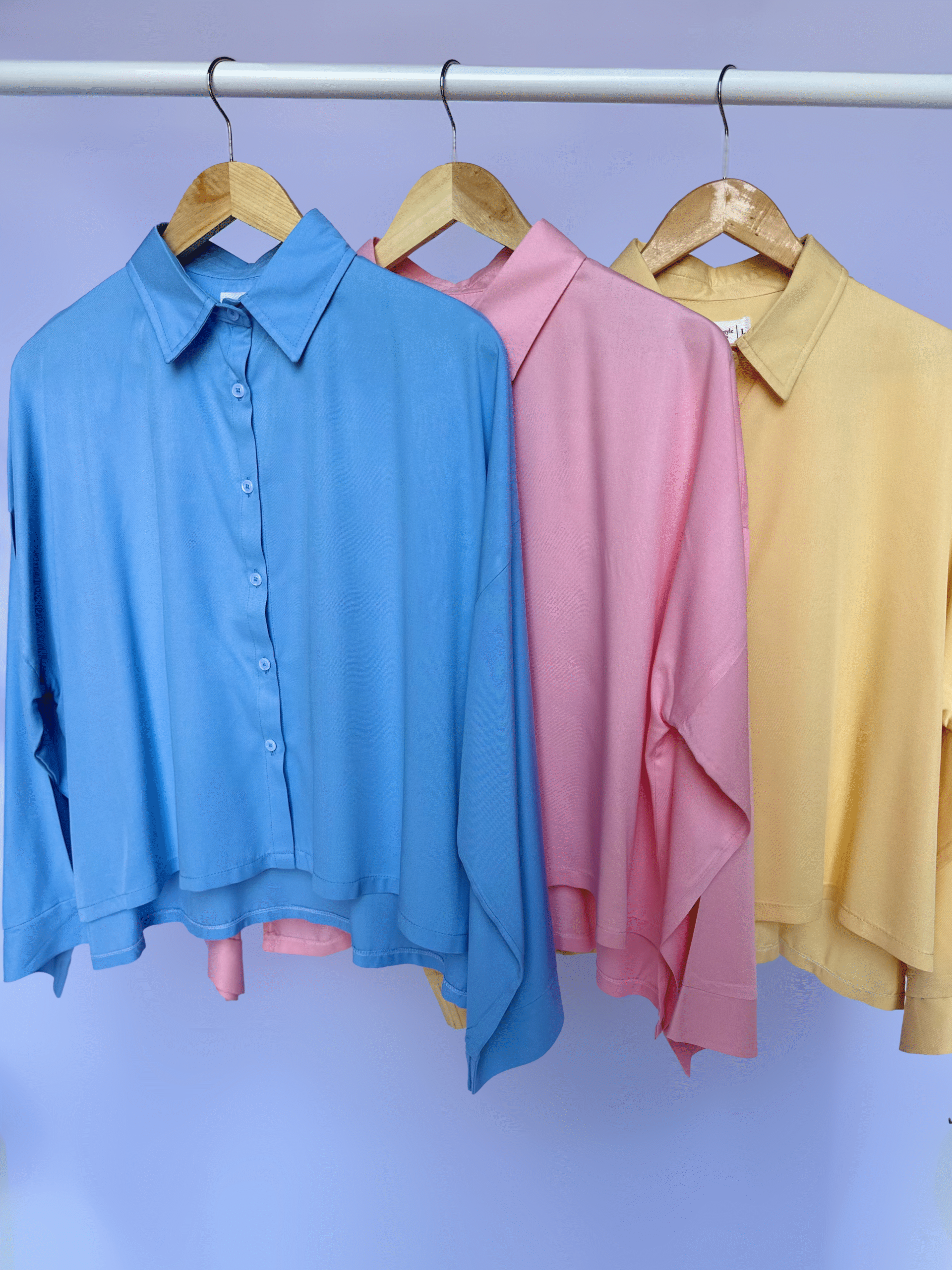 Chemises Oversize simple en lin viscose disponibles en 3 couleurs tendance.