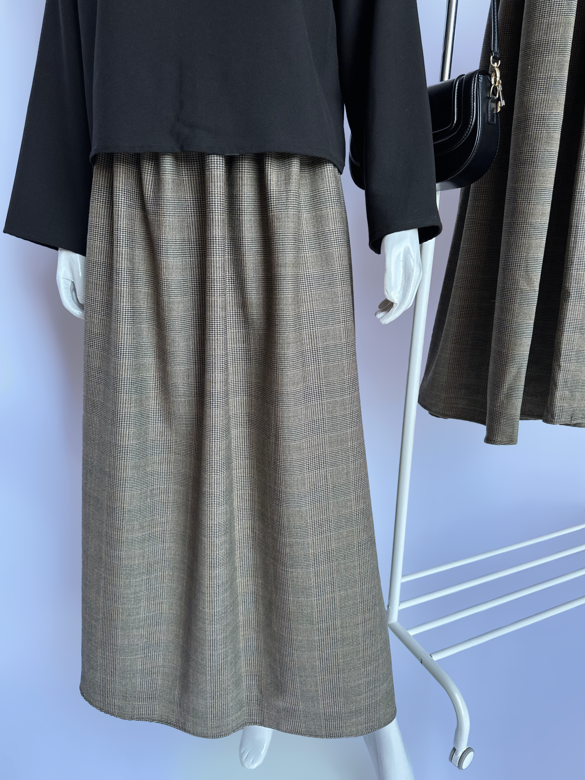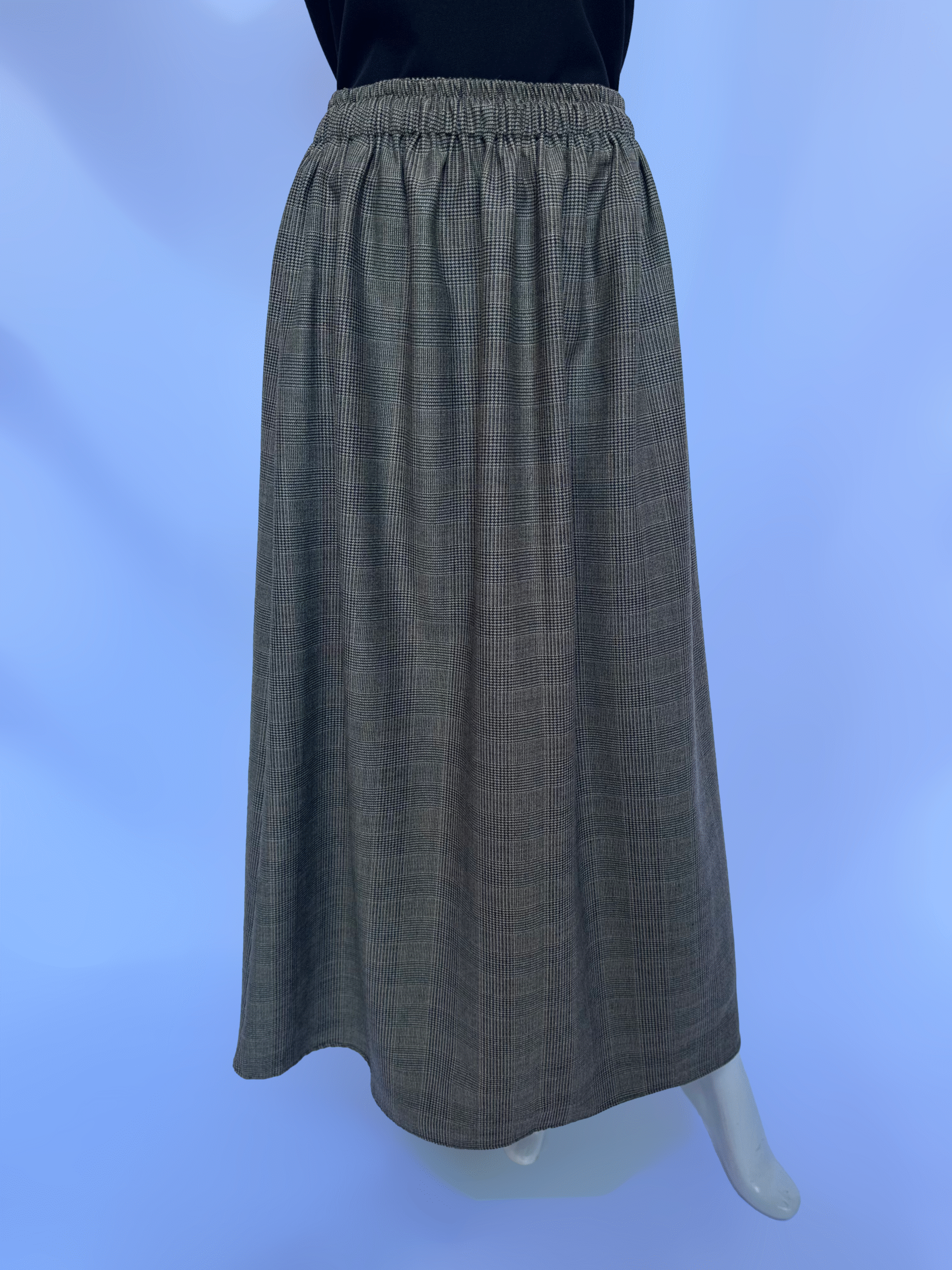 Jupe carreautée noir en « Prince de galle », confortable et stylée pour votre quotidien cet hiver.